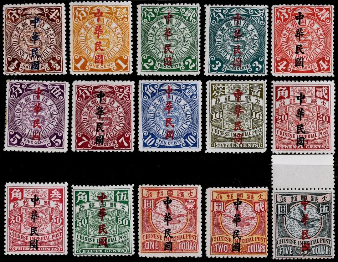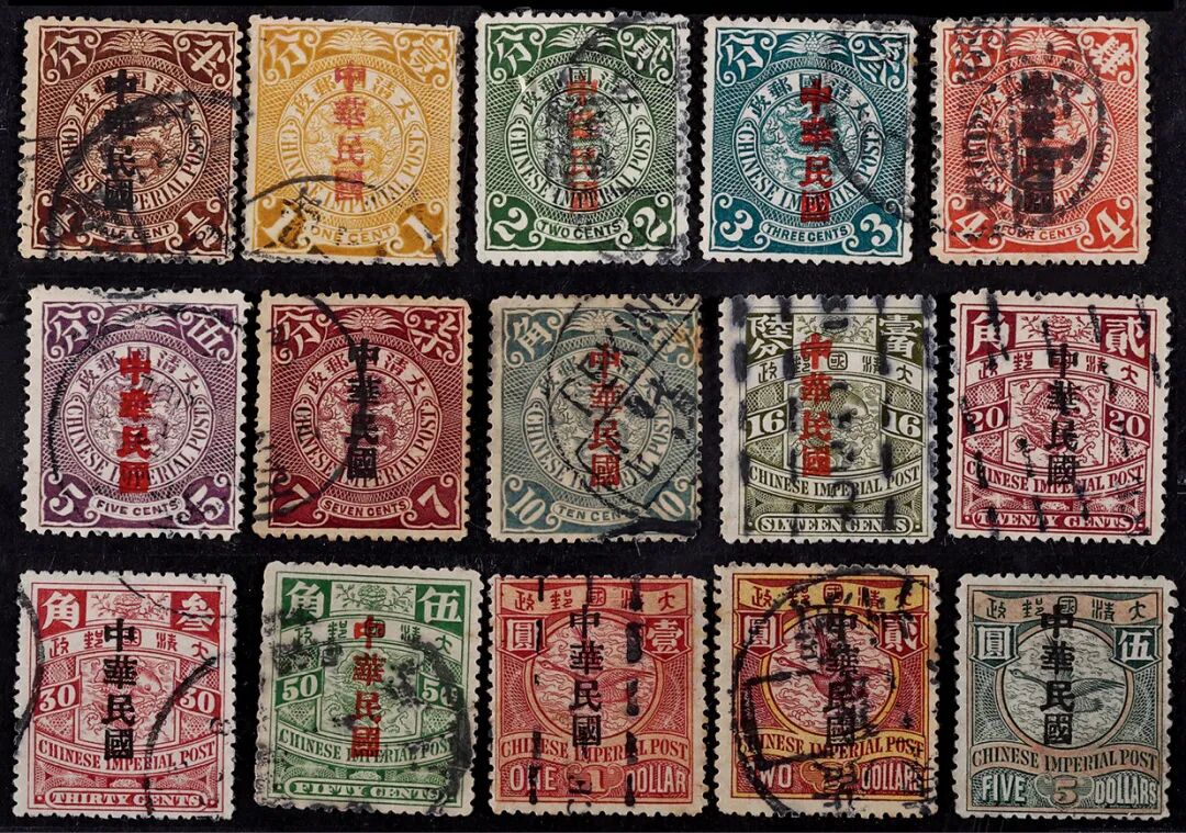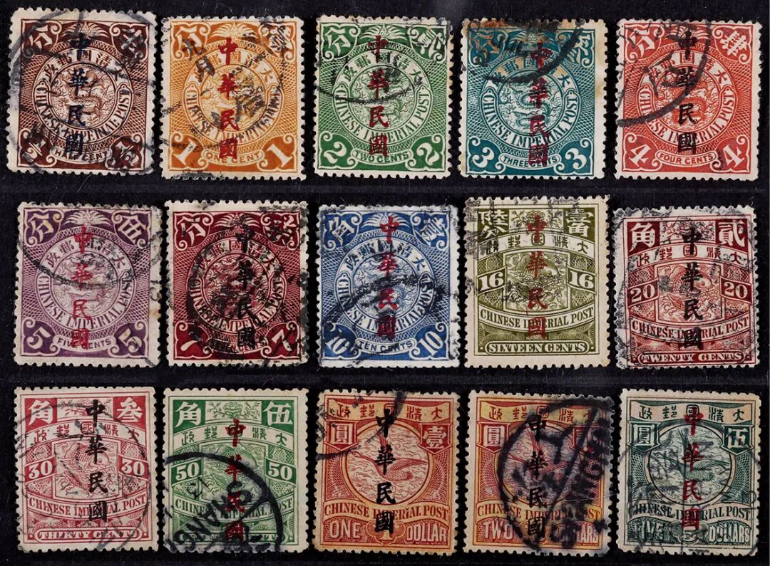 1912年蟠龙加盖楷体“中华民国”旧票全套15枚,上中品