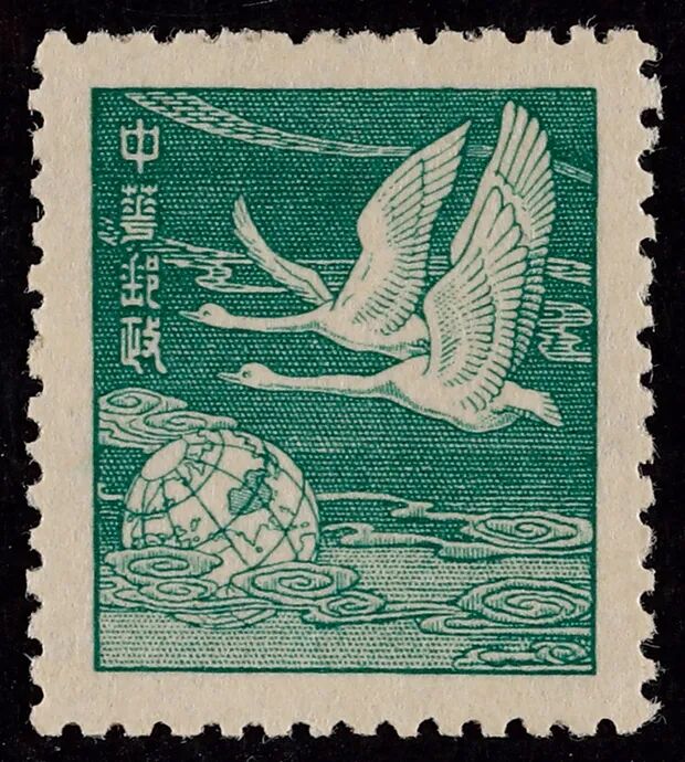 1949年上海大东版飞雁无面值样票一枚,此枚邮票多数被用于加盖改值使用,色彩鲜艳,品像极佳。非常珍罕