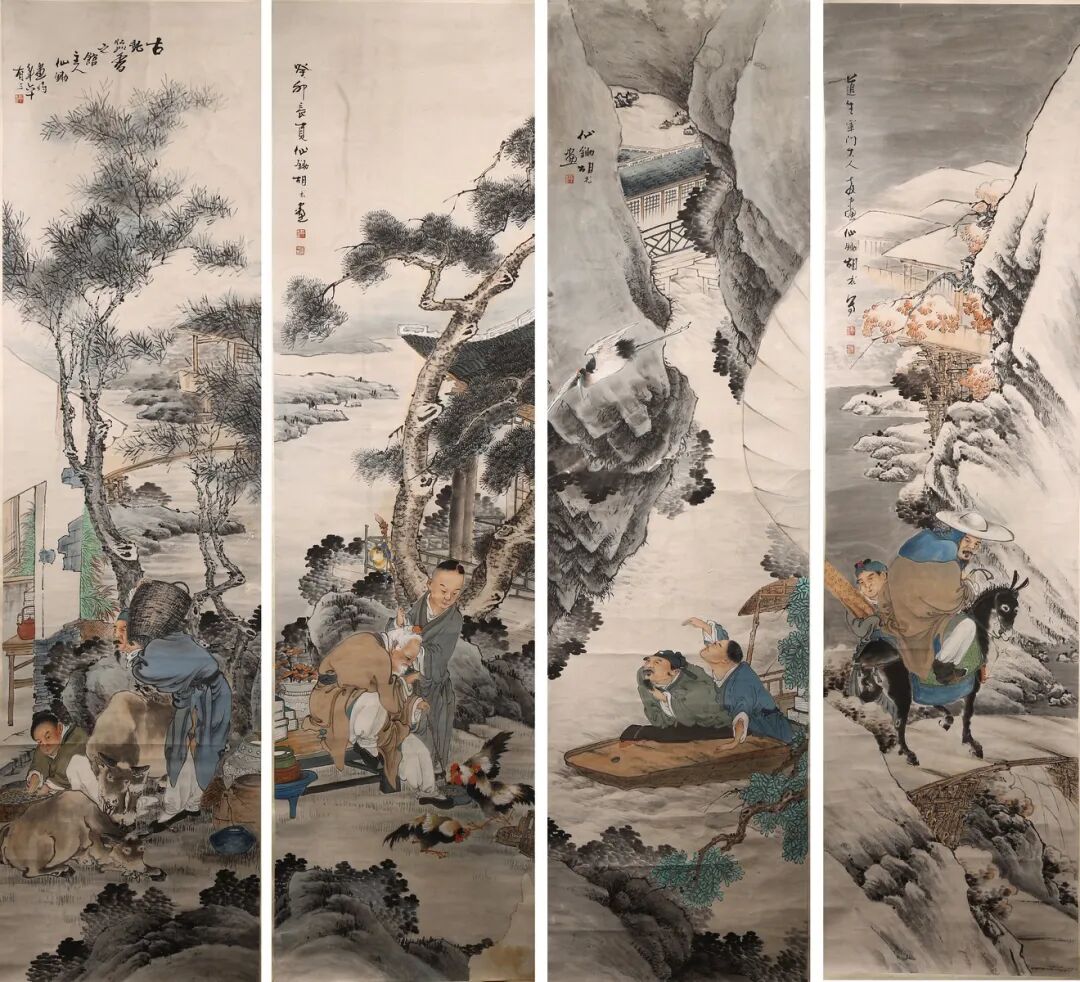 此次拍品种类繁多,来源有序,年代跨度大,多搜集自全美各地的私人家族或重要古董商的收藏。其中重点包括一套王琦1926年作粉彩红楼梦人物故事图瓷板挂屏共四件,来源自亚利桑那州雅各布斯伉俪(Jake and Karen Jacobs)收藏,其家族于1970年前居住于纽约州时购得;十八/十九世纪描金达摩多罗尊者像唐卡,来源纽约重要古董商阿尔伯特-鲁道夫(Albert Rudolph)收藏;一套精品翡翠珠宝收藏,来源洛杉矶私人藏家收藏;书画方面,包括张大千作品《红叶小鸟》图,徐悲鸿《立马图》等,来源新加坡著名藏家陈之初旧藏;以及来自温哥华,纽约等地藏家的明清玉雕作品精选等。王琦 丙寅年作(1926)粉彩红楼梦人物故事瓷板画四屏来源:亚利桑那州凤凰城B.Jacobs先生及夫人收藏,其家族于1970年前购于纽约