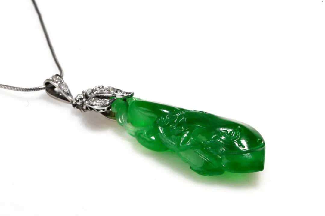 翡翠在清代盛行,清代大学者纪昀在《阅微草堂笔记》卷十六中载有:翡翠玉,今则以为珍玩。事实上,清代大内,则时常有收录大臣所进贡的翡翠制作摆件等。拍品翡翠制成,种水皆佳,质地优良,质胜美玉,整体色泽浓淡相宜,雕琢处理精美,令整体呈现纵深的立体感。仕女面容端庄清丽,目光低垂柔和,体态轻盈,气质雍容华贵,举止间透出女性的恬静文雅之美,衣纹自然生动,身形窈窕柔美。整器取材优良,雕刻手法精湛,比例优美,注重姿态表情以及服装饰品的细节刻画,线条婉转流畅,与沉稳凝重、青翠温润的翡翠玉色相互映衬,可谓恰到好处,成对保存完好,配有木座及原装盒。