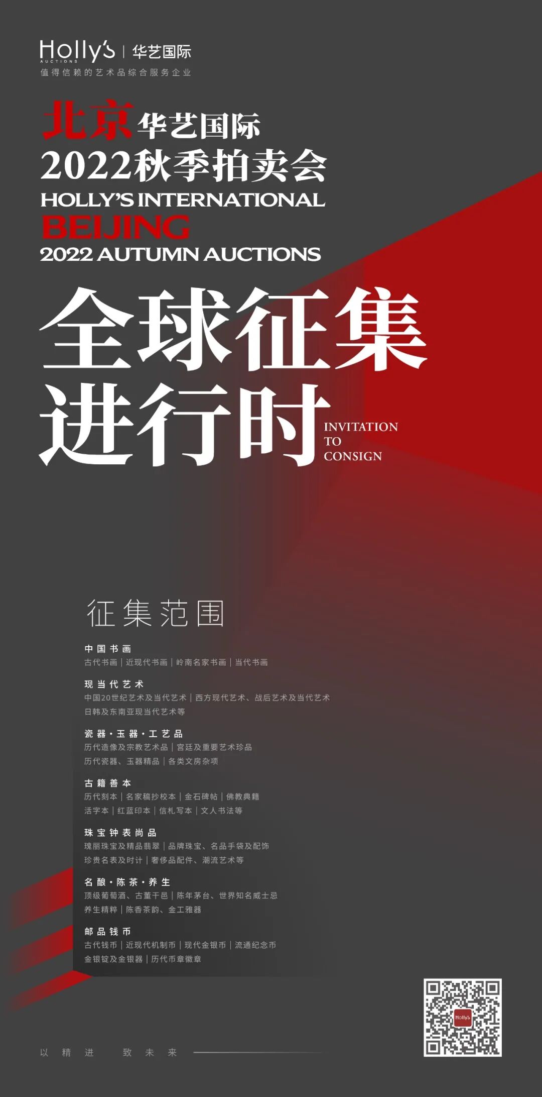 华艺国际(广州)2022秋季拍卖会电子图录也将于近日陆续上线,需要提前做功课的各位藏家可以通过华艺国际官方微信号、华艺在线APP、指定二维码等方式获取电子图录,以便随时、随地、随心预览本次全部拍品。敬请关注后续更新!