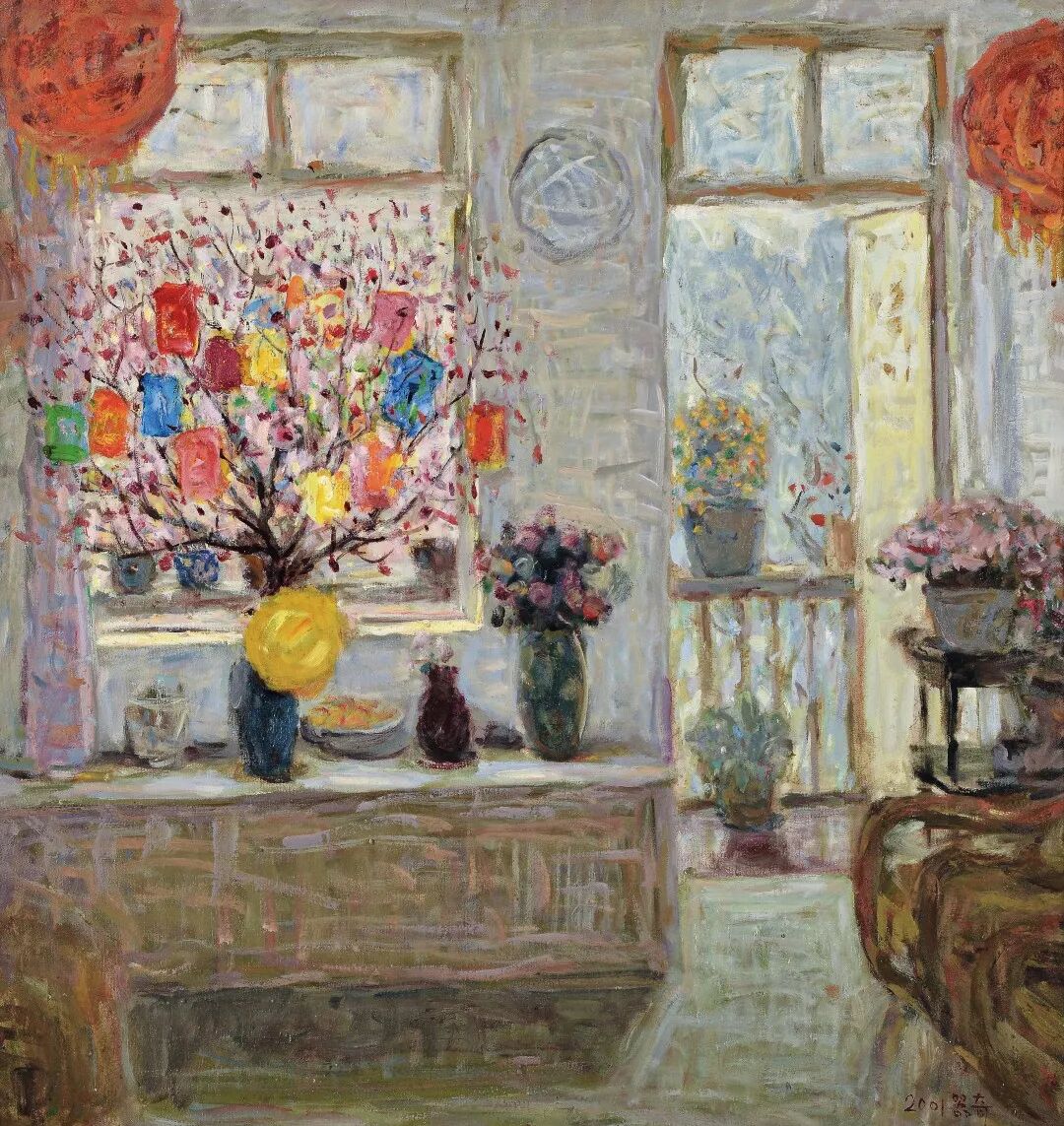 签名:2001 器奇;春到岭百姓家 梁器奇作 2001年 广州美院(背签)