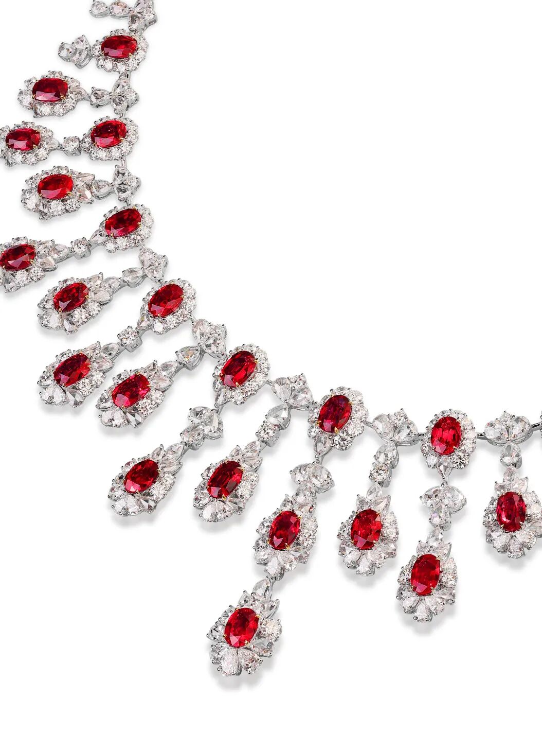 18K白金「莫桑比克」天然红宝石配镶钻石套链