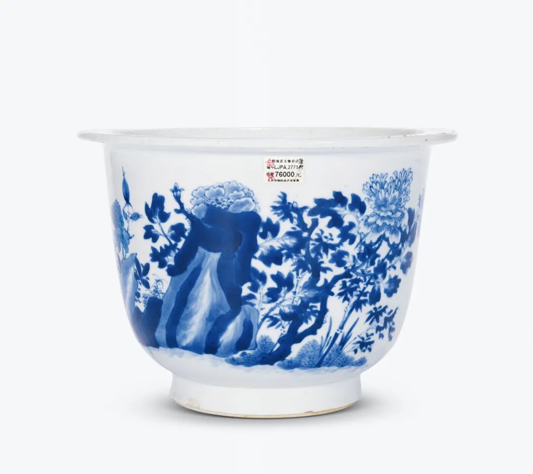 清康熙 青花花鸟纹折沿花盆