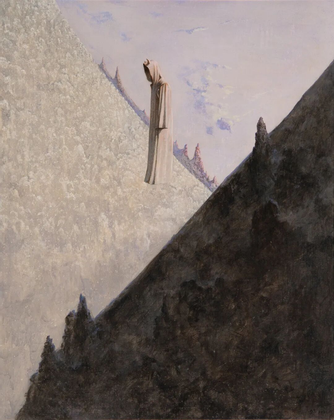 坦培拉自诞生后被广泛用于绘制宗教题材的作品,而我们这个时代人和世界的关系已经被技术的钢性逻辑、经济的蛮横暴力破坏了,在利益和效益至上的思维洗脑中,生命自然的光辉被丢失了。“上帝死了”,跟着“人”也死了,当代人堕落为忙碌的躯壳,于是艾安愿意选用坦培拉这个古老画种,在一层层慢慢洇染的技术过程中恢复人和世界的亲切关系。于是他创造出了一个与众不同的绘画世界,让人能暂时放下纠结的物欲和肉欲,开始思考如何面对和安顿我们自己这件真正的大事。于是,艾安这些小尺幅的继承传统技法的画,在我们当代人的困境中,承担起了当下的前卫角色——重建内心的精神生活,静静地面对存在、面对永恒,其实就是来重新面对我们自己。