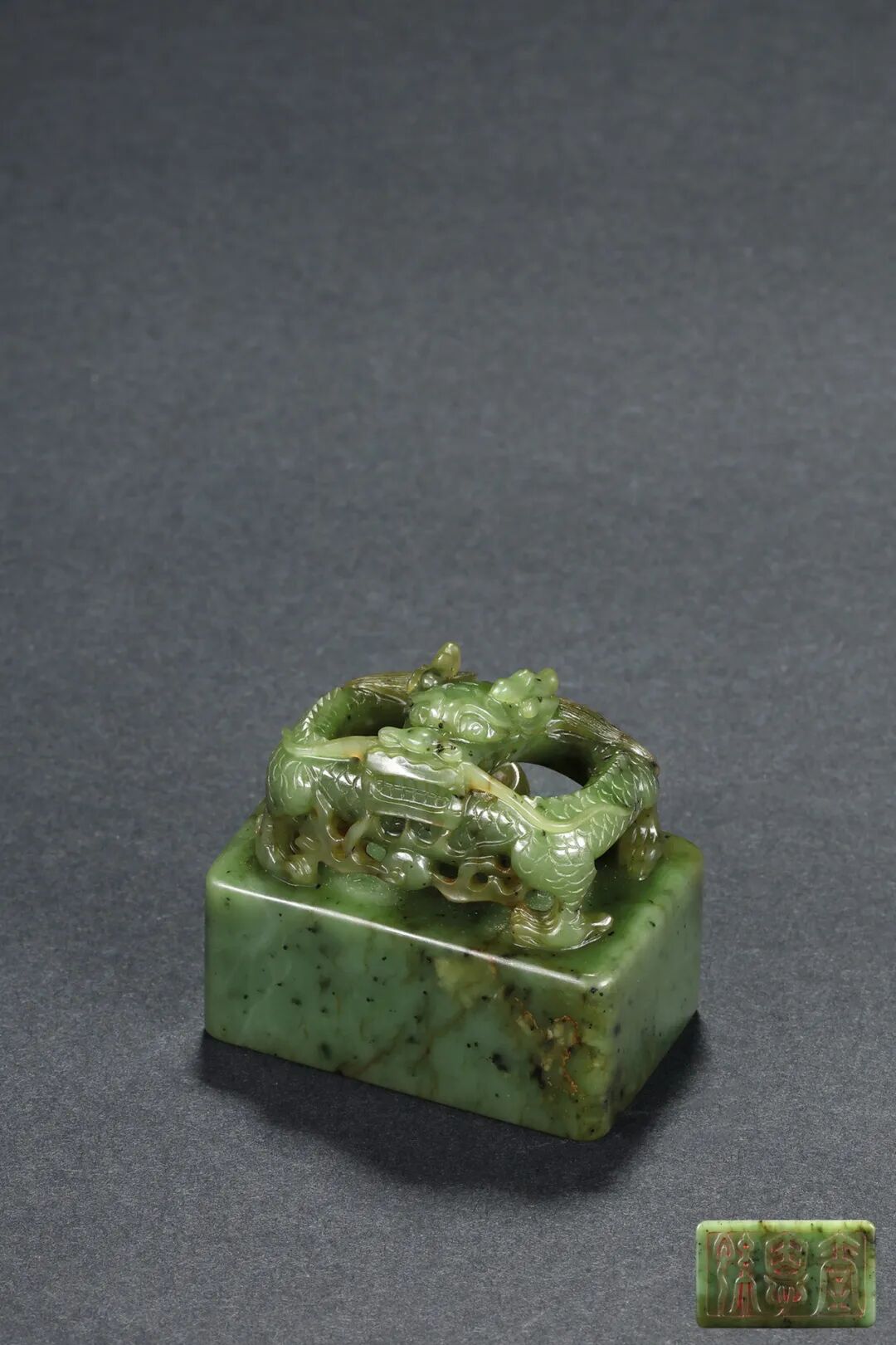 清乾隆 碧玉雕龙纽印“纪恩堂”玺