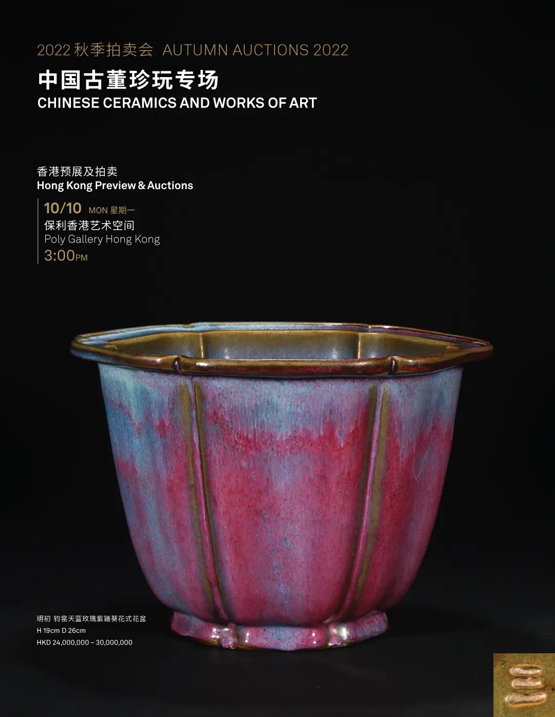 金秋十月,中国古董珍玩部将为众藏家精心呈献两大专场,分别为“中国古董珍玩”及“花舞大唐:北美十面灵璧山居珍藏唐代艺术珍品”专场。其中“中国古董珍玩”包含瓷器、佛教艺术、玉器、青铜礼器、文房杂项等多个艺术品类,佳品云集,拍品来源广泛,风格多元。领衔拍品包括明初钧窑天蓝玫瑰紫釉葵花式花盆,早于 1996 年从香港苏富比释出,其后辗转由重要私人藏家入藏。