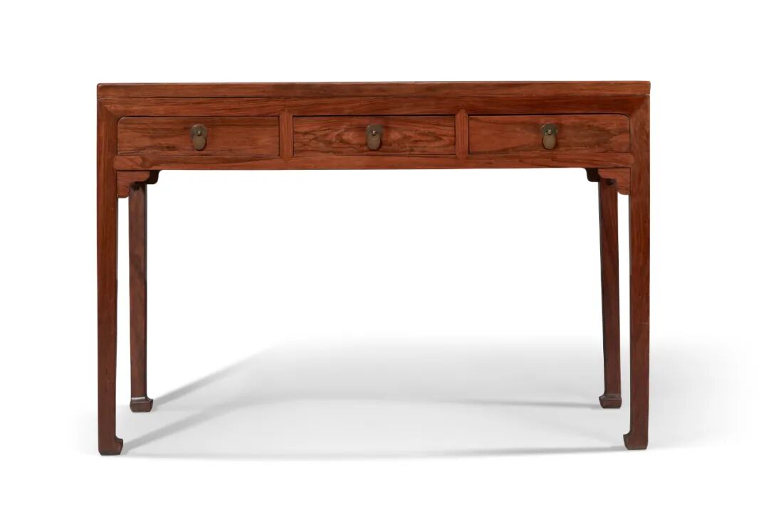 黄花梨三屉书桌