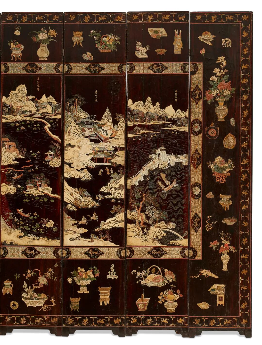 款彩山水人物图 十二扇屏风