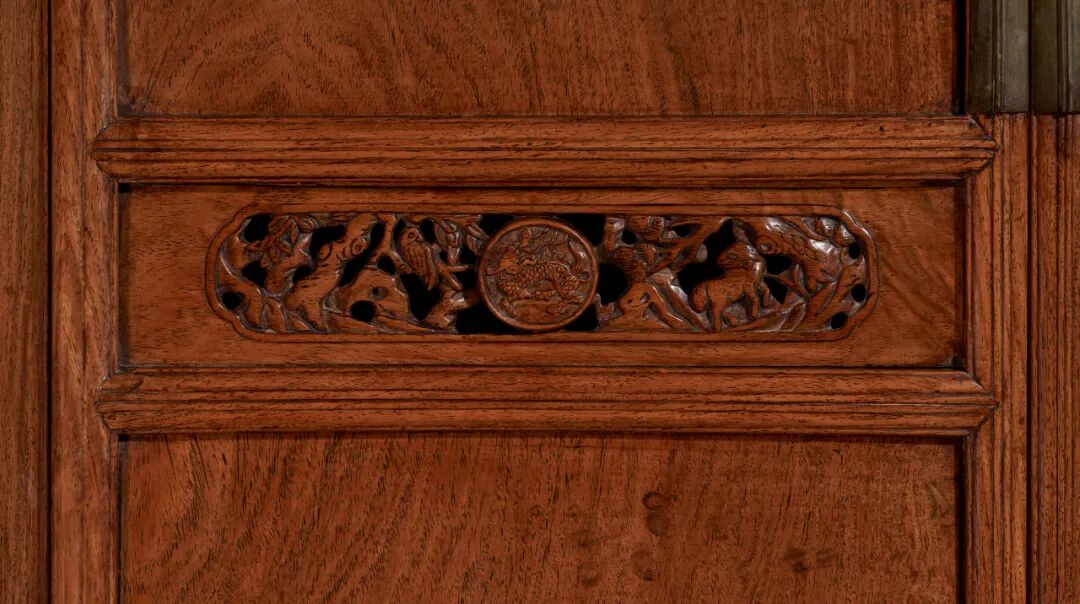 黄花梨透雕瑞兽花卉纹圆角柜