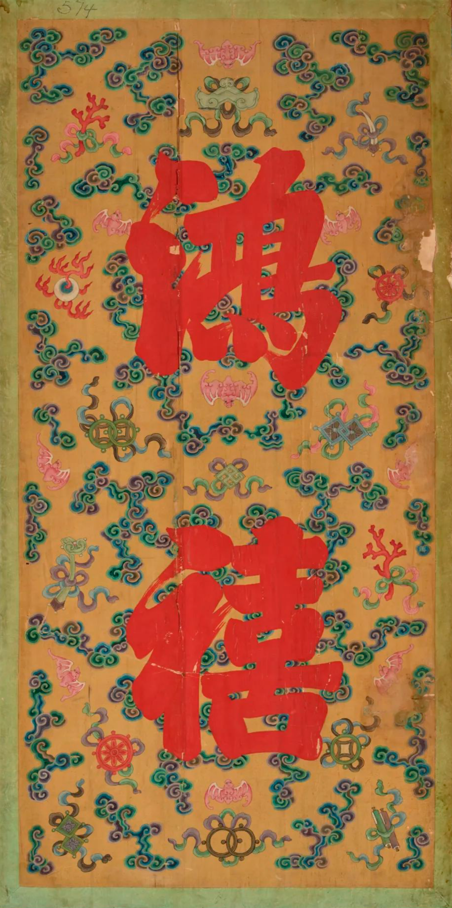 每扇:高 234.3 cm., 宽 42.5 cm., 布装裱