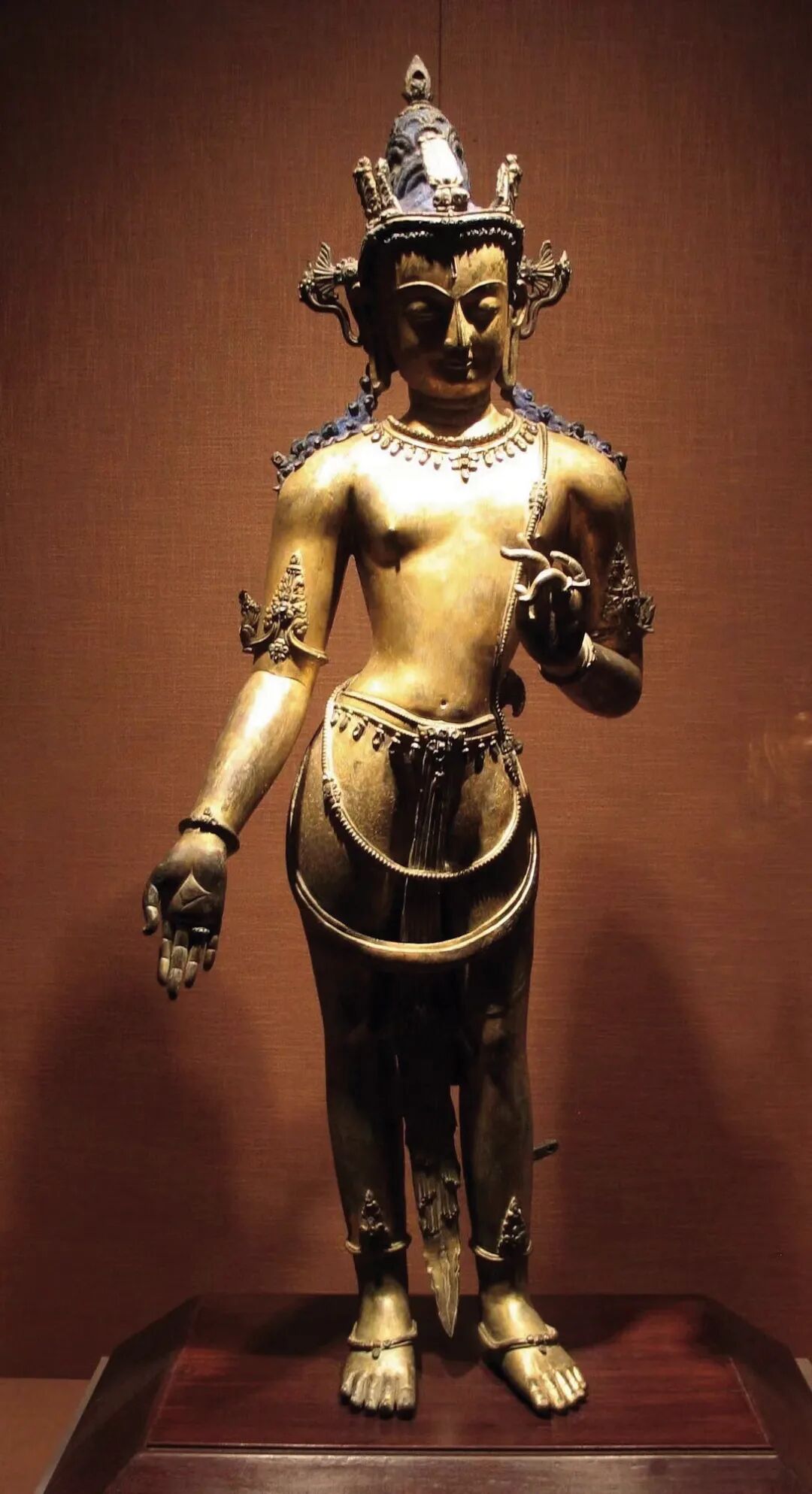 14世纪铜鎏金站姿莲花手观音