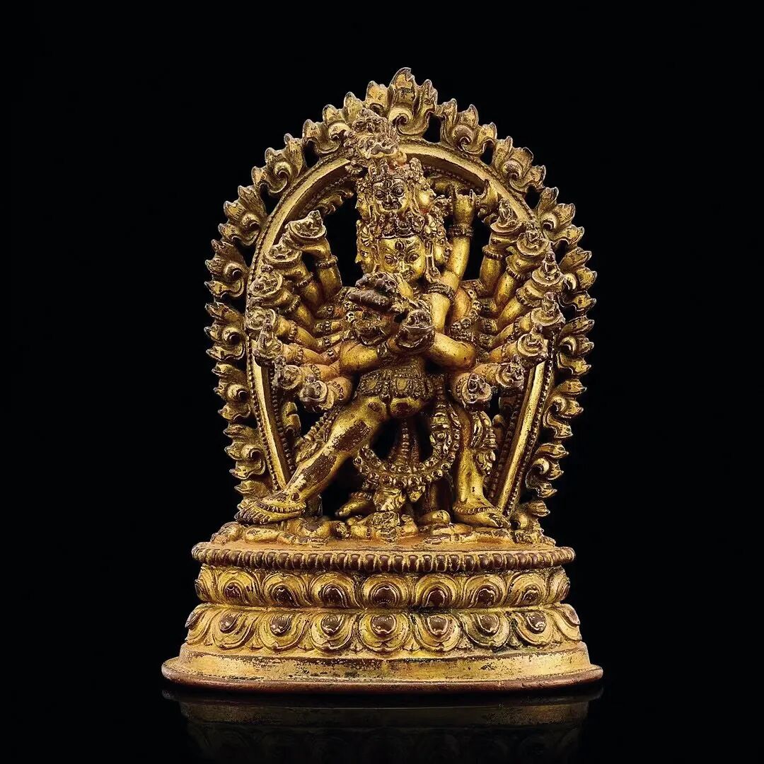 无独有偶,2021年香港苏富比“佛道禅心:雪月藏佛教造像”专场中,一尊风格和大小都与本尊一致的鎏金銅喜金剛像,以四百多万港币释出,都为迦舍末罗王朝的造像风格研究工作提供了重要的实物例证。同时,这尊造像亦展现出令人赏心悦目的艺术与工艺之美,是一件值得关注与追寻的优秀之作!
