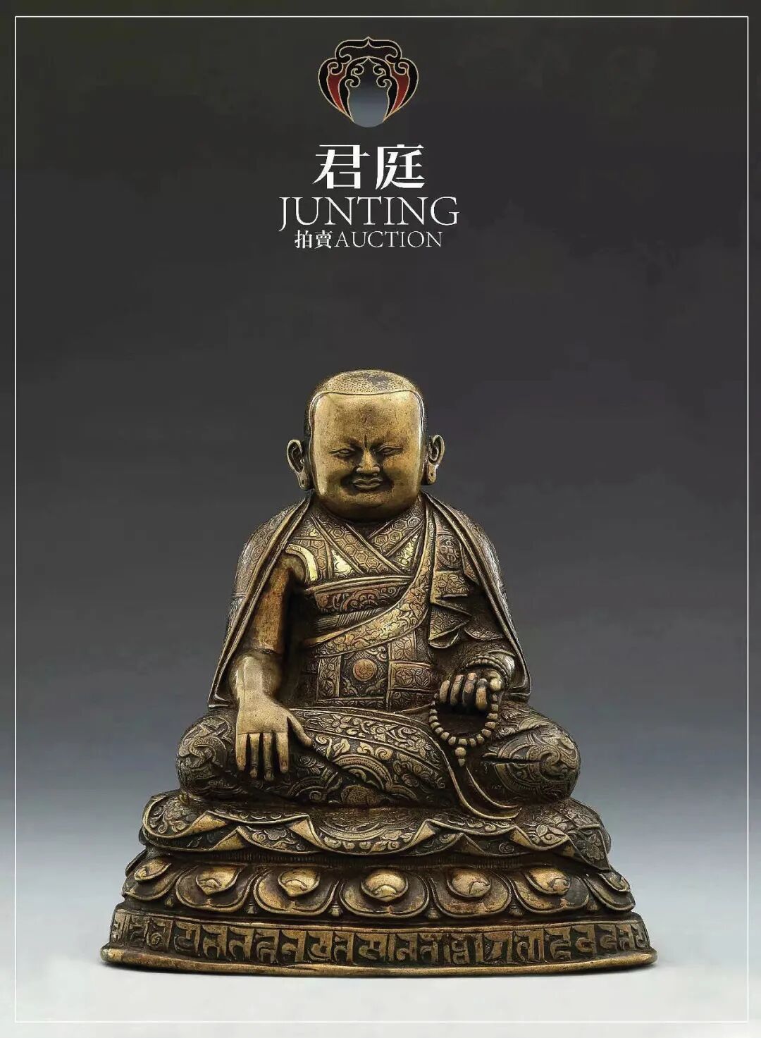 参见一例觉囊派祖师笃布巴像,莲瓣的造像基本一致,莲台背面同样也有着极为复杂的錾刻,底座下沿的梵文铭刻亦如出一辙,艺术性和稀缺性不分伯仲。值得注意的是,此尊祖师像市场表现十分惊艳,曾于2016年四川军庭首届拍卖会690万元人民币售出,后入藏国内著名私人美术馆,可见业界对此类风格的极高追捧。