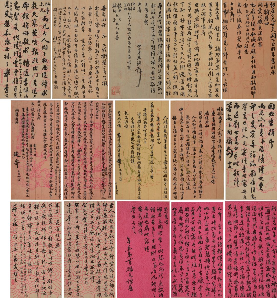 邵友濂(1841-1901)札、秦国镛(清)札、张守基札、李延札、黄麟元札、晟札1.邵友濂致绍庭一札,绍庭为爱新觉罗·继良,应为光绪五年邵友濂担任驻俄钦差大臣时所作。信中恭贺继良完成同治帝的惠陵工程,并受到朝廷嘉奖。而后叙及在俄驻扎之事。2.秦国镛致仙亭、亦凡一札,信中他求二人将郡馆捐册转至李健斋,待李公写妥后再送刘康侯处。仙亭为曾希文。李健斋为李光久(1845-1900),字恒亭,号健斋。江南候补道,曾参与中日甲午战争,光绪二十五年(1899)任苏松太道,迁江海关道,晋浙江按察使。刘康侯为刘麒祥,字康侯,清末湘乡人。刘蓉子。清光绪十六年(1890)任江南制造总局总办。二十年署苏松太道,二十二年实任。3.张守基致孟迪、仲丹一札,谈及自己今年因为母亲生病,就不入京应试了。对于对方能赶上慈禧皇太后的万寿盛典而开阔眼界,感到幸运之至。4.李延致王泰一札,王泰似为其管家,信中安排家中大小事情。5.黄麟元致聘三一札,聘三为朱汝珍。信中叙及与对方分别之后,十分想念。自己到了任职地之后,身体与公务上都不尽如人意。1. 邵友濂(1841-1901),字筱春(字小村,一字攸枝),初名维埏。浙江余姚人。清代政治家、外交家,曾任台湾巡抚。2.黄麟元,字兆瑞,光绪乙亥科孝廉方正,朝考一等,任直棣州州判,中顺天壬午副榜,改选知县。1.爱新觉罗·继良(1848-?),字绍庭,巴岳特氏,蒙古镶蓝旗人,清末重臣锡良之胞兄。曾任清惠陵工程处委员、户部郎中、宁夏府知府、金华府知府等职。善金石书画,名极一时,斋堂号“琴鹤堂”,存世有《琴鹤堂印谱》。曾希文(1855-1923),字仙亭,湘乡县洪山镇(今属双峰县)人。清光绪十四年(1888)举人。历官正白旗觉罗官汉学教习,安徽和州知州。工诗,为湘乡“东山十子”之一。著有《昆仑楼诗》4卷。3.朱汝珍(1870-1943),字玉堂,号聘三,又号隘园,广东清远人,清末民初书法家、文章家。光绪三十年(1904)末科榜眼,授翰林院编修,是个颇具传奇色彩的历史人物。溥顾札、梁士诒札、吉尔洪额(?-1891)札、朱福诜札、戴鸿慈(1853-1910)札、天麟札1.溥顾致叔明一札,向对方表明自己近况并询问对方情况。3.吉尔洪额一札,叙及自己在闽省山穷水尽,向对方商借五六百金应急。4.朱福诜致蔚若一札,蔚若即吴郁生,请对方帮忙询问吏部事宜。5.戴鸿慈致芝云一札,谈及李君季驯书法工而且速,希望对方找代书人时可以考虑。1.溥顾(1844-1911),清朝宗室,字荩臣,镶红旗人。光绪二十年任盛京兵部侍郎,后历任礼部右侍郎、吏部右侍郎等。2.梁士诒(1869-1933),字翼夫,号燕孙,广东广州府三水县人,国初期著名的经济家、银行家、政治家。梁士诒早年与其父梁知鉴同在三水、广州、香港读书,后又与梁启超同于佛山书院游学。光绪二十年(1894年),考取进士,历任清邮传部大臣、国务大臣、铁路总局局长,为中国早期的铁路事业作出了很大贡献。1911年,协助袁世凯胁迫清皇室退位。3.吉尔洪额(?-1891),满洲正白旗。同治十一年十二月,补授黑龙江副都统。光绪元年(1875)金顺帮办左宗棠军,新疆各军俱隶之,吉尔洪额拒不受制,率所部200人驻博通齐河,并上书奏金顺。上怒,诏令革职交左讯办。左念其性乖谬,素与人少合,屡建战功,奏于上,戍福州。二年二月,调补墨尔墨尔根副都统,因所部各军索饷酿事,革职遣戍。十五年六月,任黑龙江马、步军翼长,专司督剿呼兰巴彦苏苏、北团林子(黑龙江绥化市)义军。赏还头晶顶戴,以副都统补用。4.朱福诜(1841-1919),字桂卿,海盐澉浦镇人。幼时聪慧好学,记忆力强,苦读10余载,通经书、医学和佛经。家贫,以教书为生,邑人张元济曾就读于门下。后以拔贡入仕,清光绪五年(1879)中举。六年成进士,授编修。历任国子监司业,翰林院传讲,翰林院侍读学士,经筵讲官。十八年任会试同考官。二十三年任河南学政。二十九年任贵州学政。以编书劳绩得奖二品顶戴,赏戴花翎,授资政大夫,晋荣禄大夫。辛亥革命后卸职归里。后受徐世昌之邀,就任总统顾问,并迁居天津。5. 戴鸿慈(1853-1910),字光孺,号少怀,晚号毅庵,广东南海县人。清末出国考察五大臣之一,近代中国第一位司法部长。戴鸿慈身历咸丰、同治、光绪、宣统四朝,官至礼部尚书、法部尚书、军机大臣、协办大学士,正一品官阶,是清末一品重臣,是清朝二百多年广东省籍任职最高的官员。上款人简介:吴郁生(1854-1940),字蔚若,又号纯斋,江苏吴县人,为嘉庆戊辰科状元吴延琛之孙。清代进士,光绪三年授翰林,曾为内阁学士,兼礼部尚书、四川督学,主考广东,康有为出其门下。戊戌政变,六君子被戮,西太后因康有为出其门而不用钝斋。至西太后死,乃任邮传部尚书,军机大臣。文弼(清)札、谢启华札、果尔敏(清)札、熙元札、运源札、信札五通4.熙元致霭人一札,霭人即麟瑞。感谢对方借给自己墨盒,现奉还。5.运源致六生一札,望对方多为通融。1.文弼,满洲正红旗人。嘉庆五年(1800年)已任西安右翼副都统,后任成都副都统、驻藏办事大臣、哈密办事大臣、和阗办事大臣等。2.谢启华,广西临桂人。字春谷。光绪庚辰进士。工诗文,善书画。3.果尔敏为满洲巨族,在咸丰初年任清宫侍卫。庚申之变,咸丰帝逃往热河避难,果尔敏随扈。同治八年简授广州副都统。上款人简介:麟瑞(?-1861), 字霭人。姓瓜尔佳。满族。乍浦驻防。初充笔帖式,升印务章京。咸丰十一年与太平军战于乍城,被杀。赠副都统,封世职,谥忠