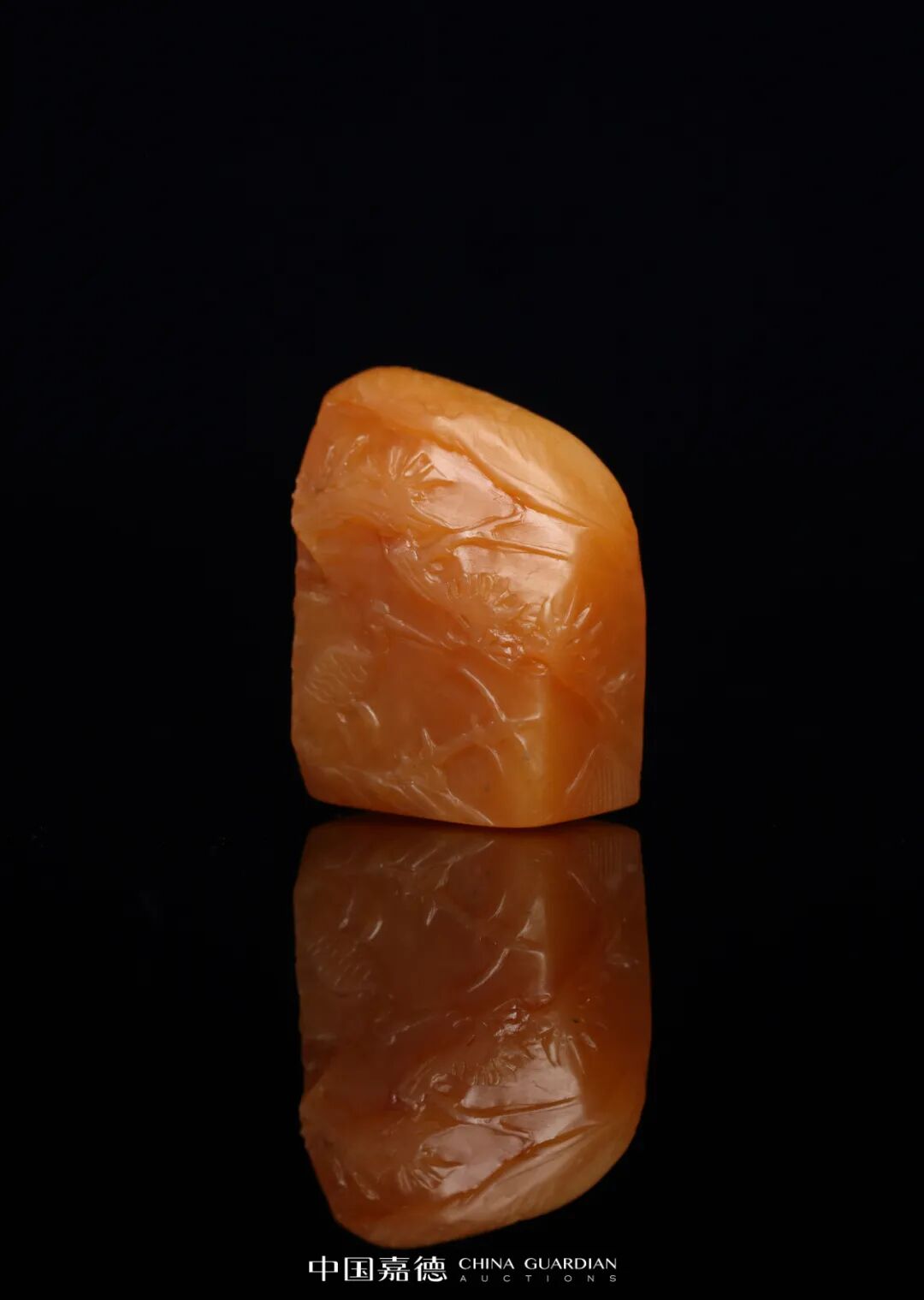 此薄意方章以寿山田黄石为材,作者随自然之形而就,石色略带朱色,润泽含光。其上薄意雕刻松下苍鹭,松枝下探,苍古遒劲,依水芦苇随风而荡,有一路登科之美意,远山疏阔,意蕴幽然。●请您于参与拍卖活动当日24小时前完成账户注册并交纳保证金。●E-BIDDING提供预约鉴赏服务,敬请关注“中国嘉德网拍”服务号预约。鉴赏地点:嘉德艺术中心B2层(北京市东城区王府井大街1号)。●中国嘉德为竞买人提供查看拍卖标的实物的条件,务请竞买人亲自审看。本公司对拍卖标的不承担瑕疵担保责任。请拨打1501000622015910807786![]()