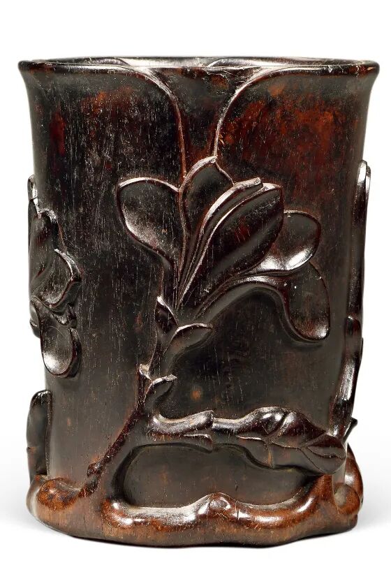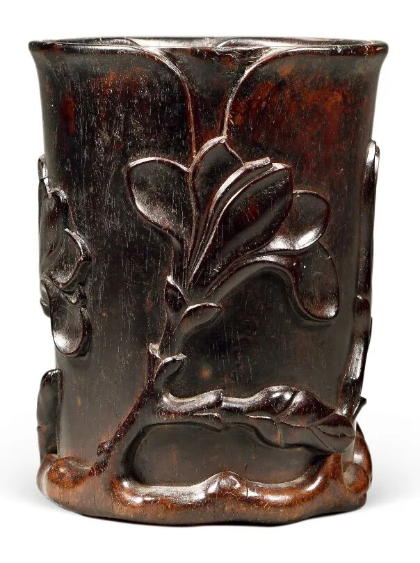 清早期紫檀玉兰花笔筒