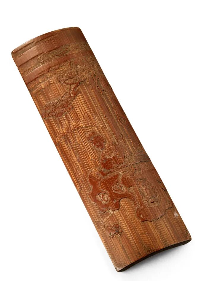 清中期竹雕桐香仕女图臂搁