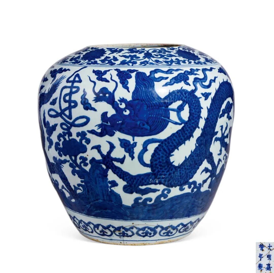 明嘉靖青花福山寿海龙纹大罐