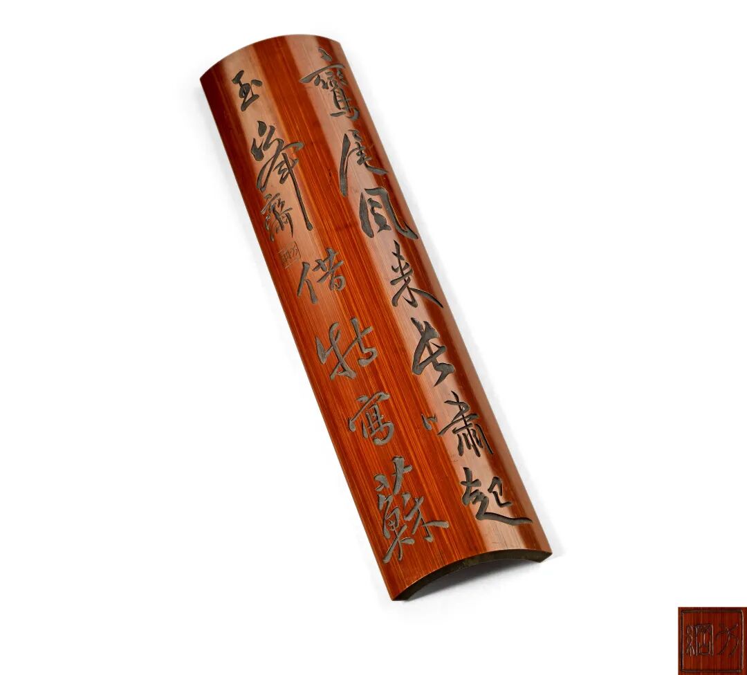 清中期竹雕诗文臂搁