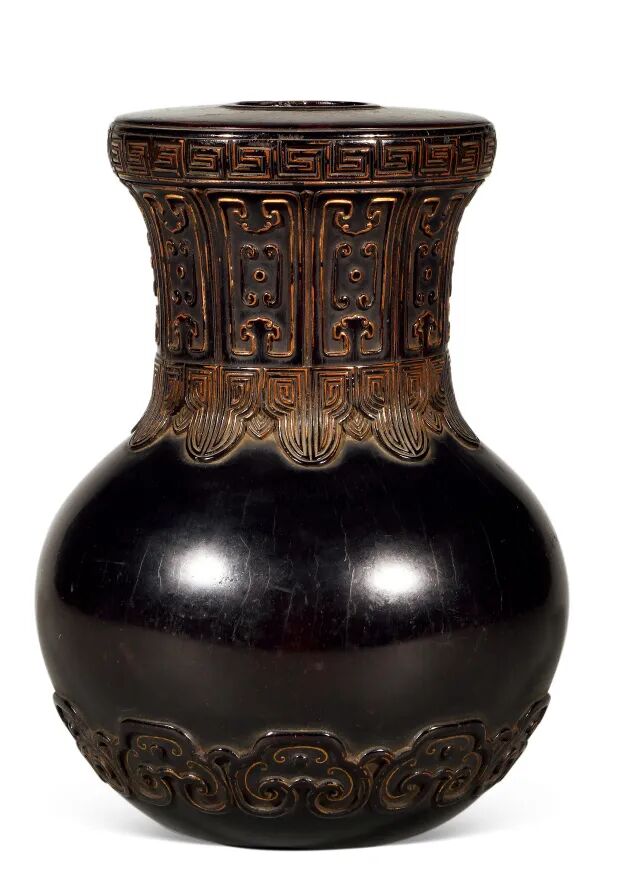 清乾隆 紫檀描金阳刻云雷纹花插