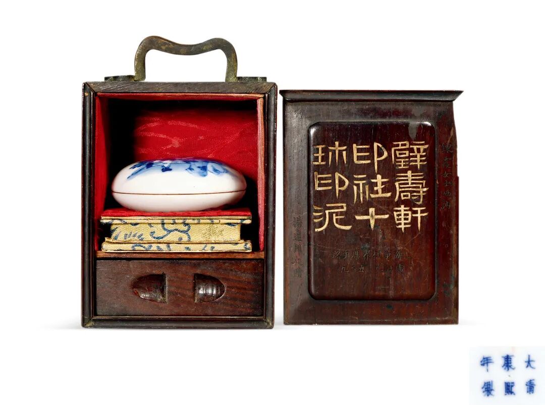清杨达邦赠周炼霞红木印盒(配瓷质印泥盒)