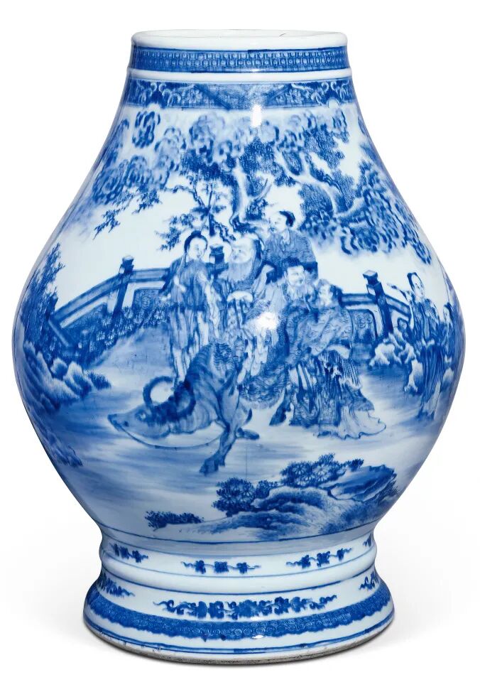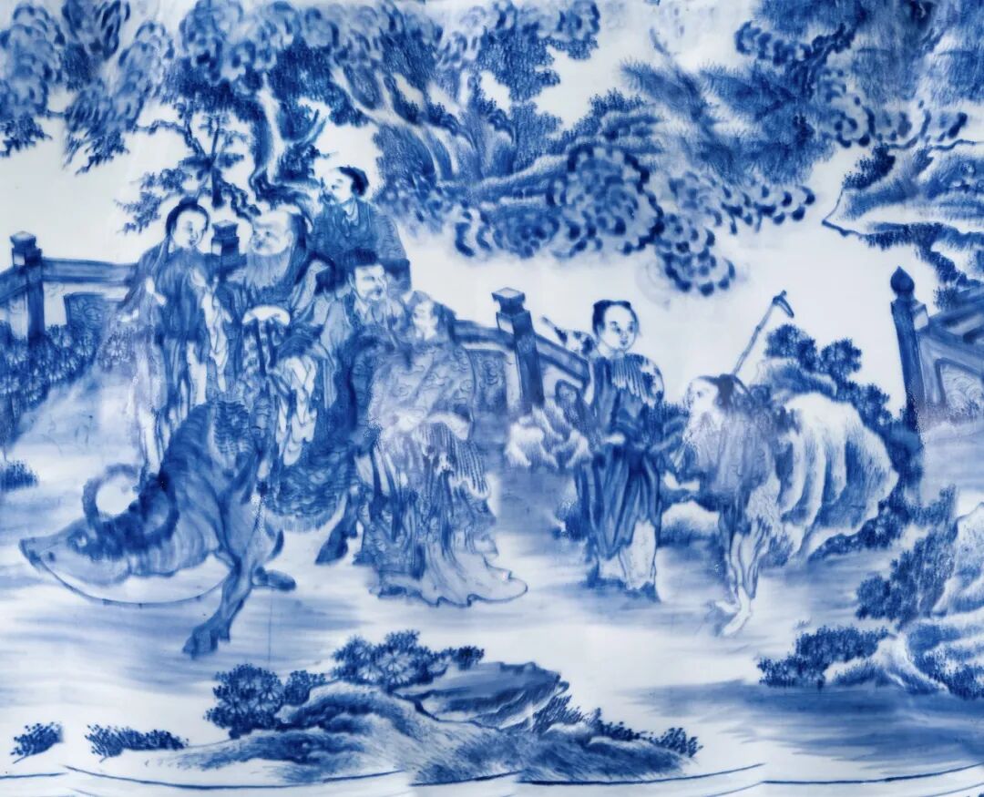 清雍正 青花老子出关图大汉壶尊