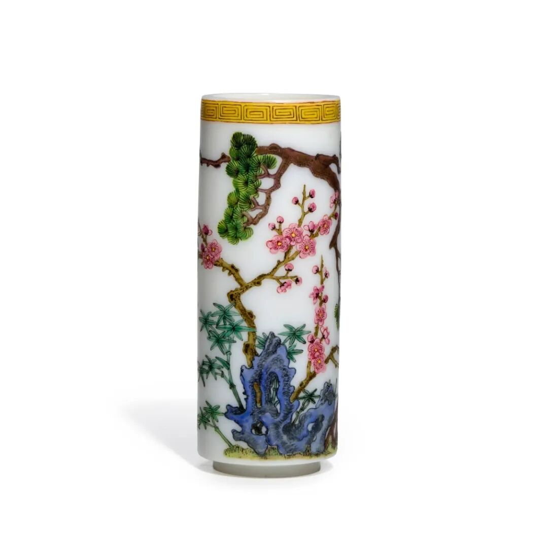 料胎珐琅彩岁寒三友图直筒瓶