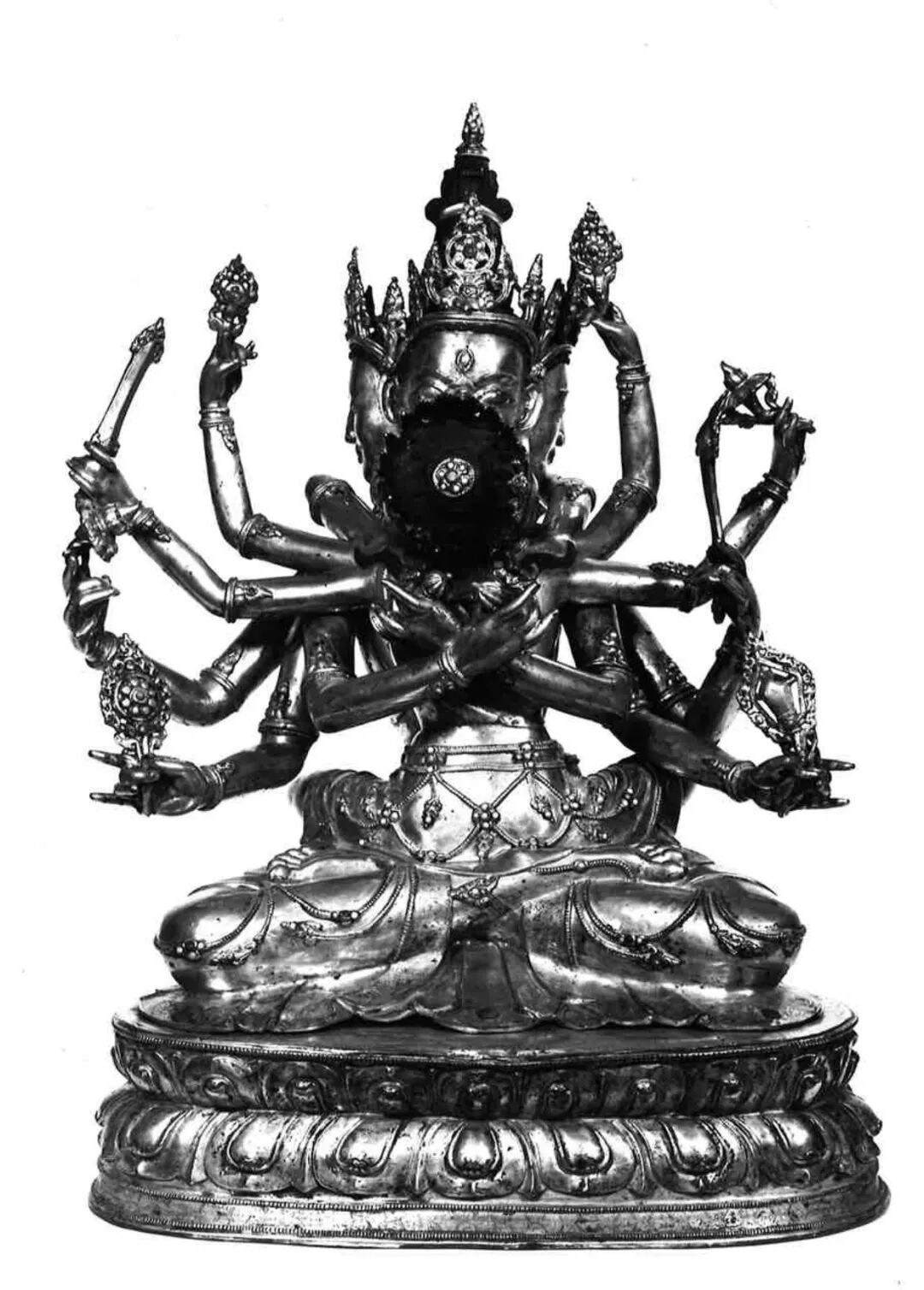 目前可归为索南坚赞工坊所造之像之完整目录列于喜马拉雅艺术资源网(其系列编号为 5157)。诸多工艺非凡的顶级作品赫然在列,如苏黎士瑞特堡博物馆所藏之铜鎏金大威德金刚双身像及密集文殊金刚双身像(见上图),以及北京首都博物馆藏密集金刚像(喜马拉雅艺术资源网 59837号)。![]()