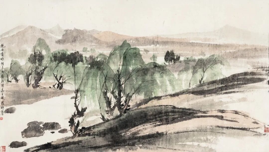 傅抱石并没有选取南京城内秦淮河两岸的繁华,而是选取郊野一段,表现秦淮春色,可谓独具匠心。