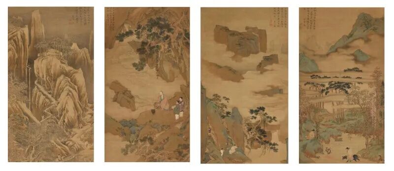 设色绢本四屏
