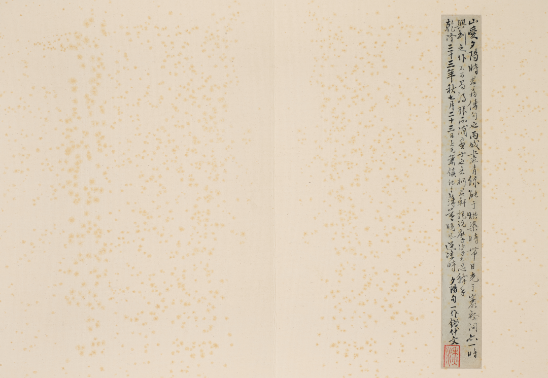 注:金农墨梅取自生活,古雅盎然,有天真之趣,亦有风骨之胜,常用以比喻自身境遇。本幅作于晚年,七十岁岁末之交,是他艺术面貌最成熟之时。题识中在在显露出他的孤高寂寞,如「恨无薛家笔法,添画襹褷六鹤于左右耳」,表达往来无人知心的境遇,又如「树无丑态香沾袖,不爱花人莫与看。」展示其高洁文人的自信,可谓文人画中逸笔。本幅流传有序,自葛昌楹降,分别经章劲宇、高野侯、王南屏递藏,此皆近代精鉴之人,于1994年展览于耶鲁大学美术馆,并出版于班宗华为玉斋所著书中,纸之精墨之妙,往来中外皆识。