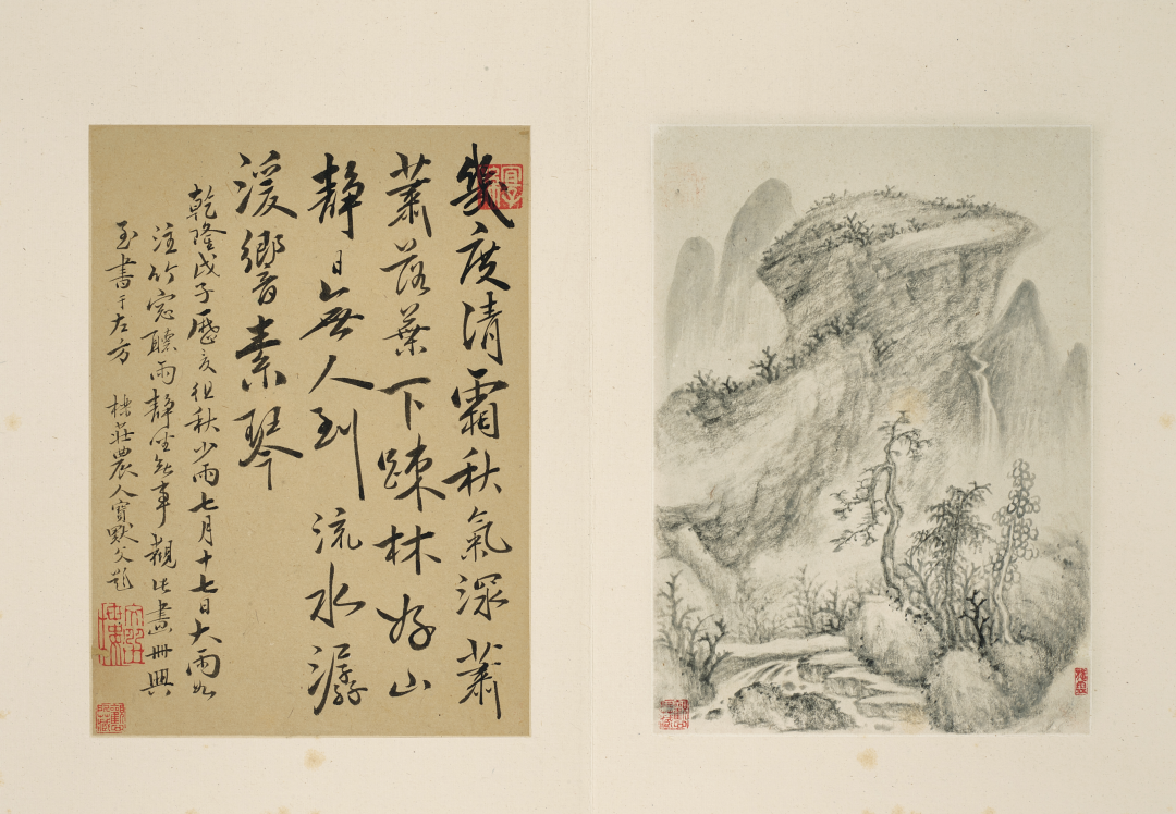 本幅笔墨苍桑蓊郁,浑厚华兹,董邦达自题摹黄鹤山樵之《秋山草堂图》,王蒙原幅现藏台北故宫博物院,构图一致,笔墨精到,可参照欣赏之。