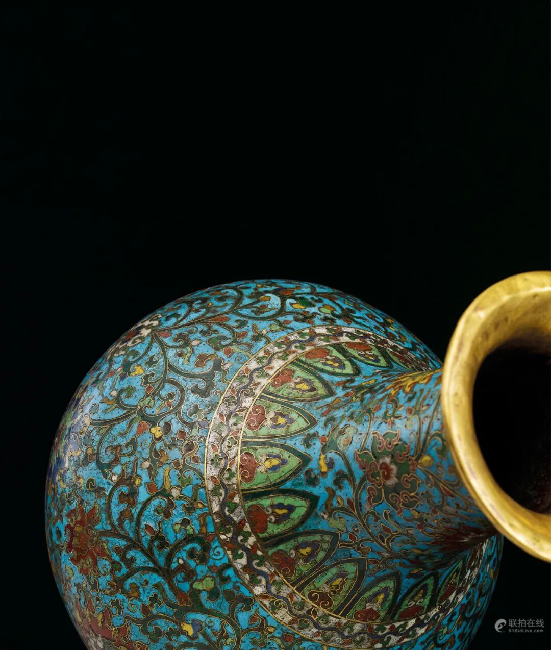 Lot 646 明 铜胎掐丝珐琅缠枝宝相花纹玉壶春瓶