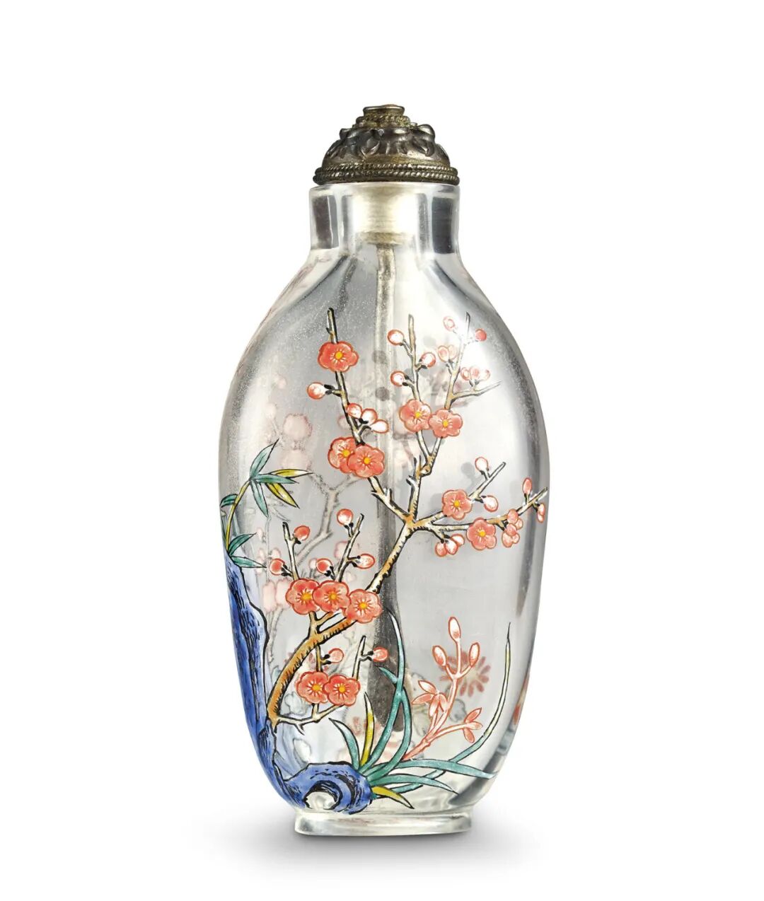 Lot 269 清乾隆 透明玻璃胎画珐琅四君子图鼻烟壶