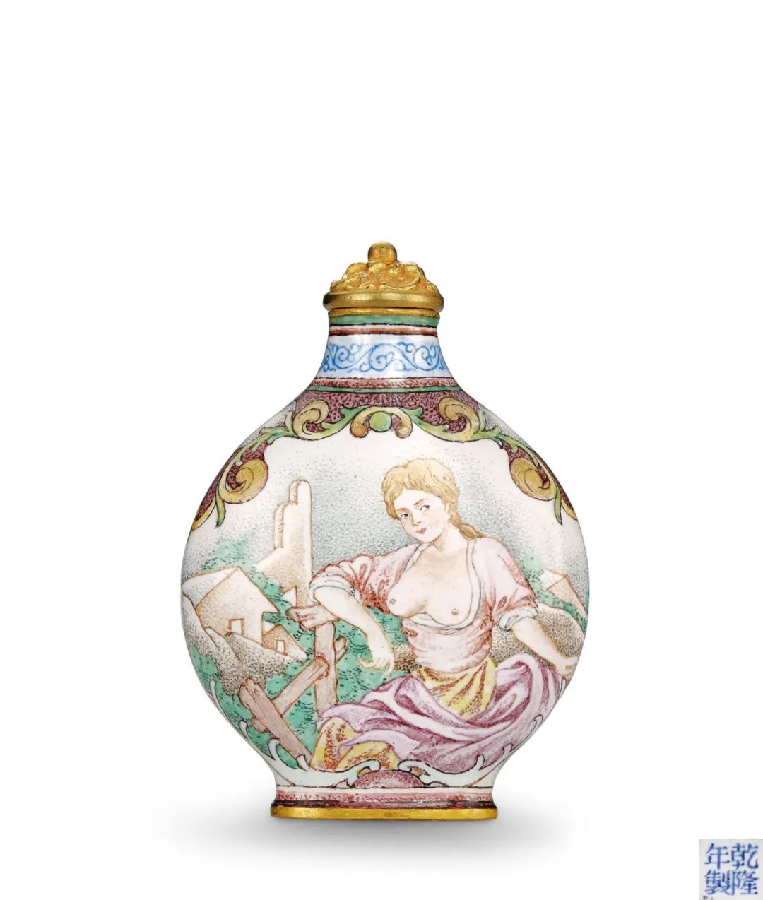 Lot325 清乾隆 金胎画珐琅西洋仕女图鼻烟壶