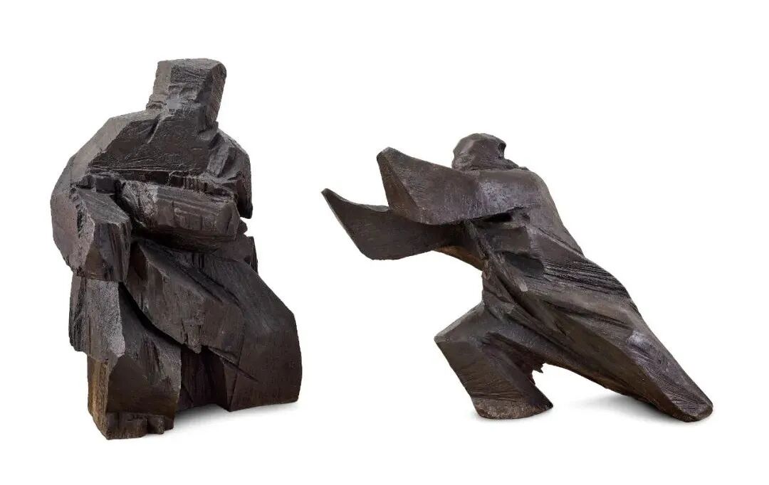 现代艺术家对具象和抽象艺术的探讨不仅仅体现在绘画上,在朱铭的《太极系列》雕塑中,可见艺术家对这两种艺术风格平衡的探讨。朱铭在八〇年代开启了「太极系列」的创作,是他创作生涯中的转折点。他以木雕为原模,将其翻铸成铜雕作品,因此《太极系列》虽然是铜雕作品,但却有细腻自然的木材纹路,十分独特。艺术家将人物的形态简化,用更简洁和抽象的风格表达出太极的动态和美感。