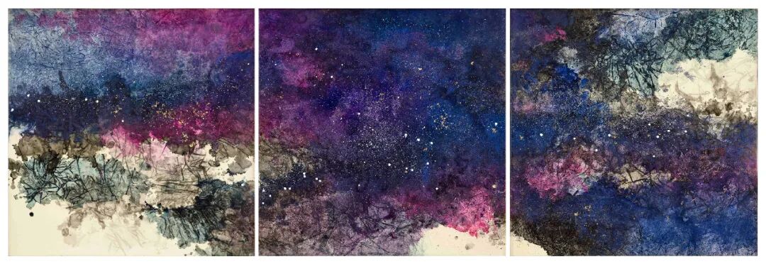 彩墨纸本(三联屏),二〇二二年作,88.5 x 88.5公分