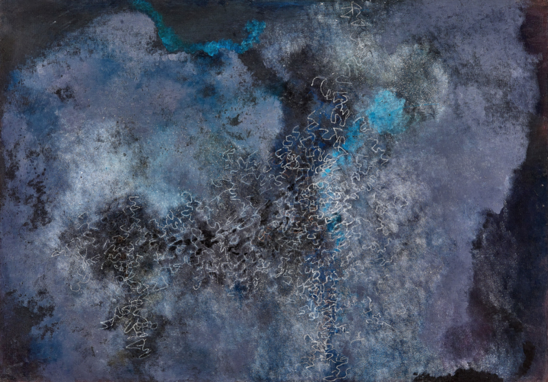 《无题》作于一九九〇年代,是谢景兰搬到法国南部后,以寂静的夜海为灵感所创作的油画作品。相比起艺术家早期抽象作品中明显的书法符号影响,此作的用色更加开放自如,同时亦留下融合中国传统山水与西方画技的独特风格。
