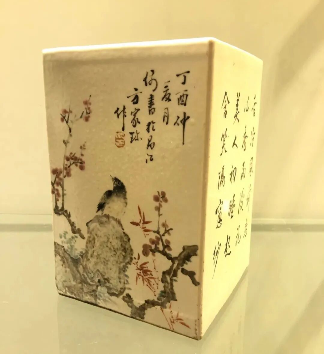 20多年来收藏各式各样的笔筒如瓷雕、青花、釉下彩、粉彩各种陶瓷工艺笔筒,数量高达1100多件,在全国也绝无仅有。20多年前花一百多元收回的笔筒,现在已经价值数万元,甚至十几万元。