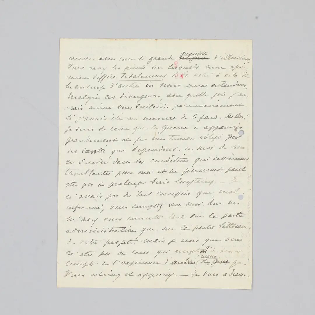 此信中,顾拜旦先讲道“尽管过去的这四个月可以说是我此生中最痛苦的一段时间,但我仍时不时想到您的事情,还拜读了您《教学综合》的一月刊…”,后又回忆自己担任编辑以及一战时期的往事“在整整七年的时间里,我亲自编撰了《奥林匹克评论》月刊和《法国编年史》…战前我对成功的几率已然存疑,但在战后便是绝无可能了…我若还财力富足的话,其实是十分愿意在金钱上支持您的出版事业的。唉!可惜啊,我和许多人一样被战争消磨的一文不剩……”。可见当时巴贝先前致信顾拜旦,希望在经济上得到后者的资助。信中所及的七年时间应指1900年至1906年的这段时间,在这段时间内顾拜旦夜以继日编纂《法国编年史》。《奥林匹克评论》月刊在一战前陷入困境,战后不得不停刊。