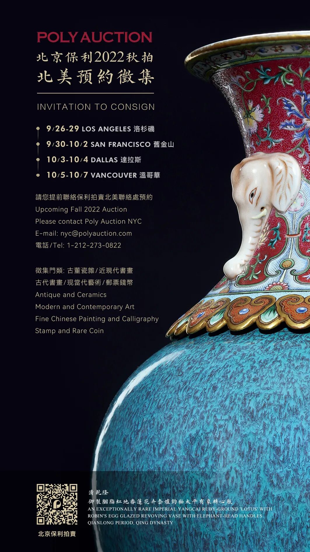 9月26日,北京保利拍卖北美征集洛杉矶站即将展开。金秋时节,我们期待获得您的支持,必将不负所托,笃力前行,再创佳绩!