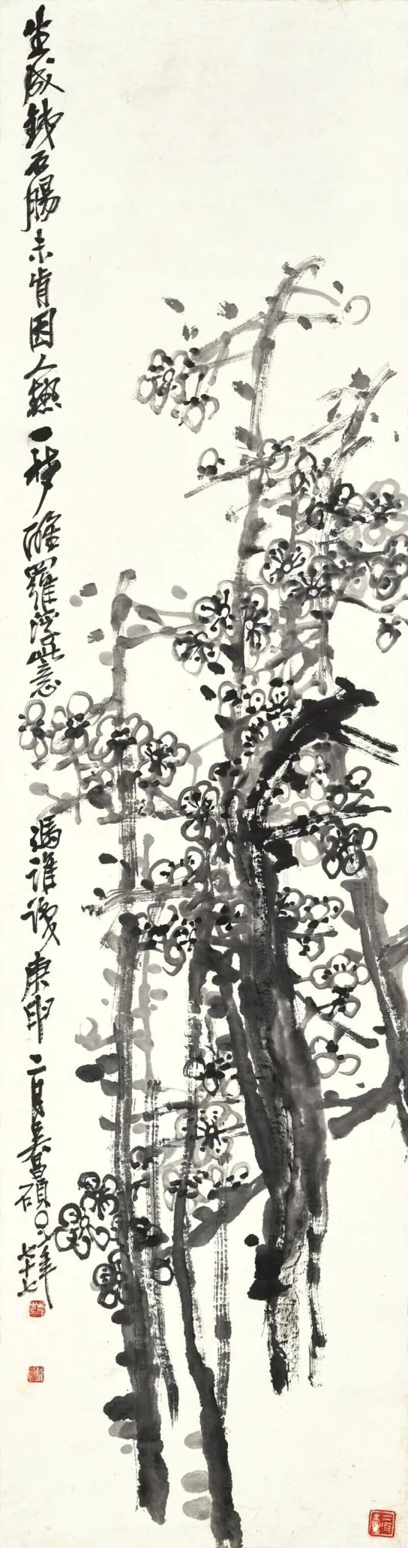 款识:生成铁石肠,未肯因人热。一梦醒罗浮,此意凭谁识。庚申二月,吴昌硕年七十七。