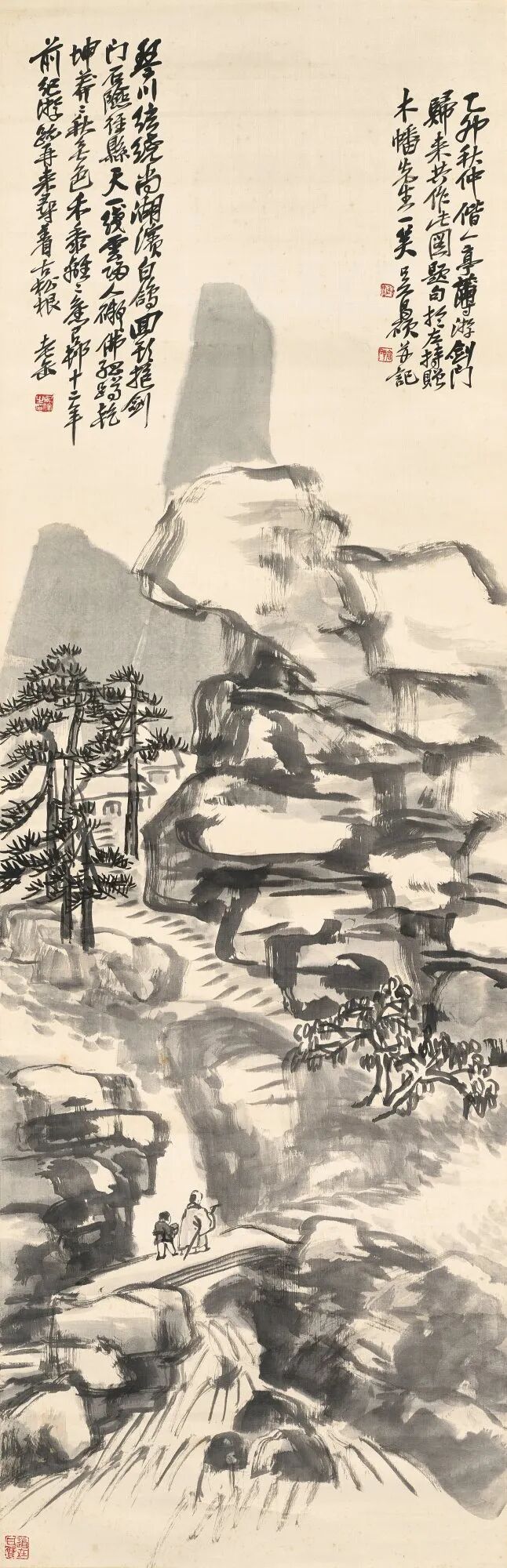 乙卯秋仲,偕一亭薄游剑门,归来共作此图,题句于左,持赠木幡先生一笑,吴昌硕并记。