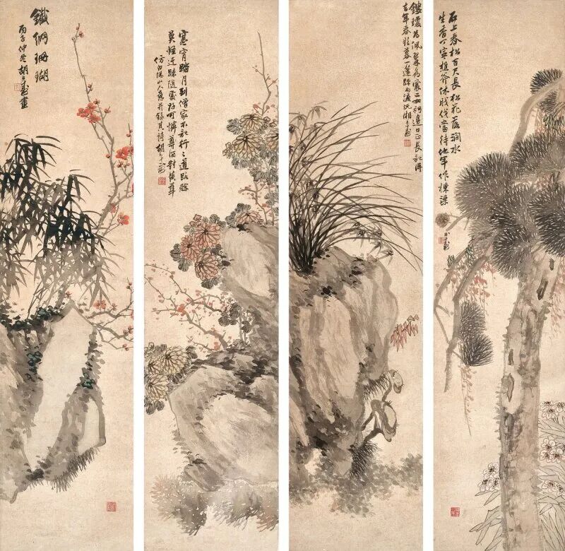钤印:「吴俊之印」、「老缶」、「仓硕」、「道在瓦甓」。