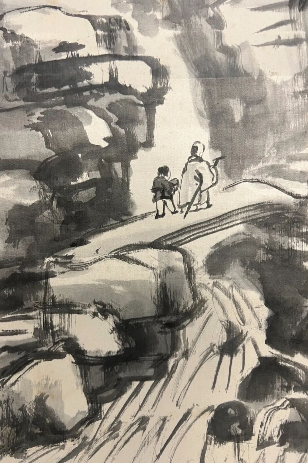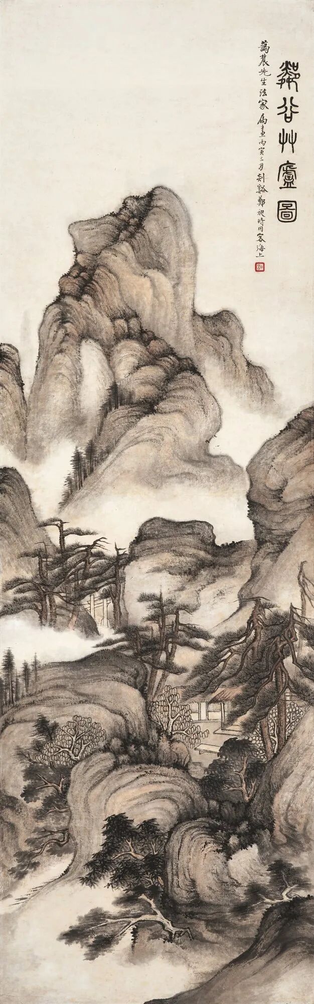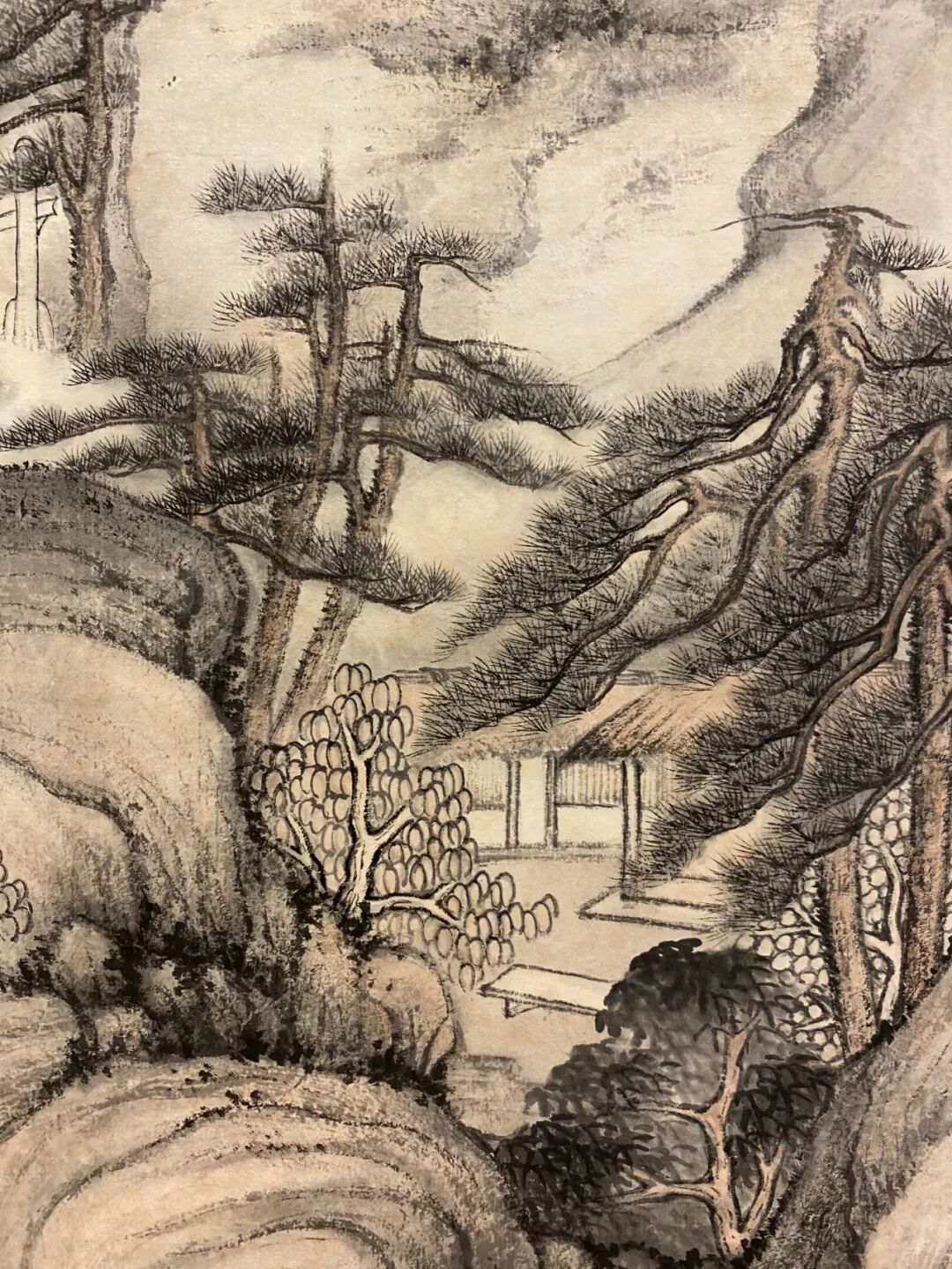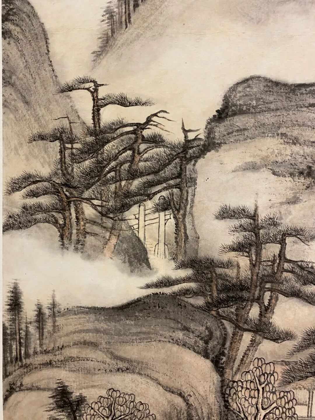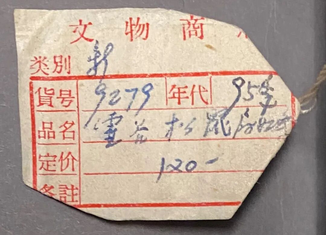 本幅原藏者乃法国资深外交官,在六十年代至七十年代期间,历任驻华大使馆二等秘书、驻匈牙利大使馆二等秘书、驻苏联大使馆一等秘书等职。又获任法国驻联合国日内瓦办事处的常任代表,擢升至具大使衔。据其忆述,一九六八年一月至一九七〇年五月,正值「文化大革命」炽热期间,供职驻北京大使馆。得睹馆内仝事所藏傅抱石山水,深受启发,翌日即往琉璃厂的文物商店购置书画,其中包括傅抱石〈毛泽东《登庐山》诗意〉及黄宾虹〈幽谷论道图〉等,于二〇一二及一三年于香港苏富比先后释出。本幅亦得于同期,上具当年文物商店标记。