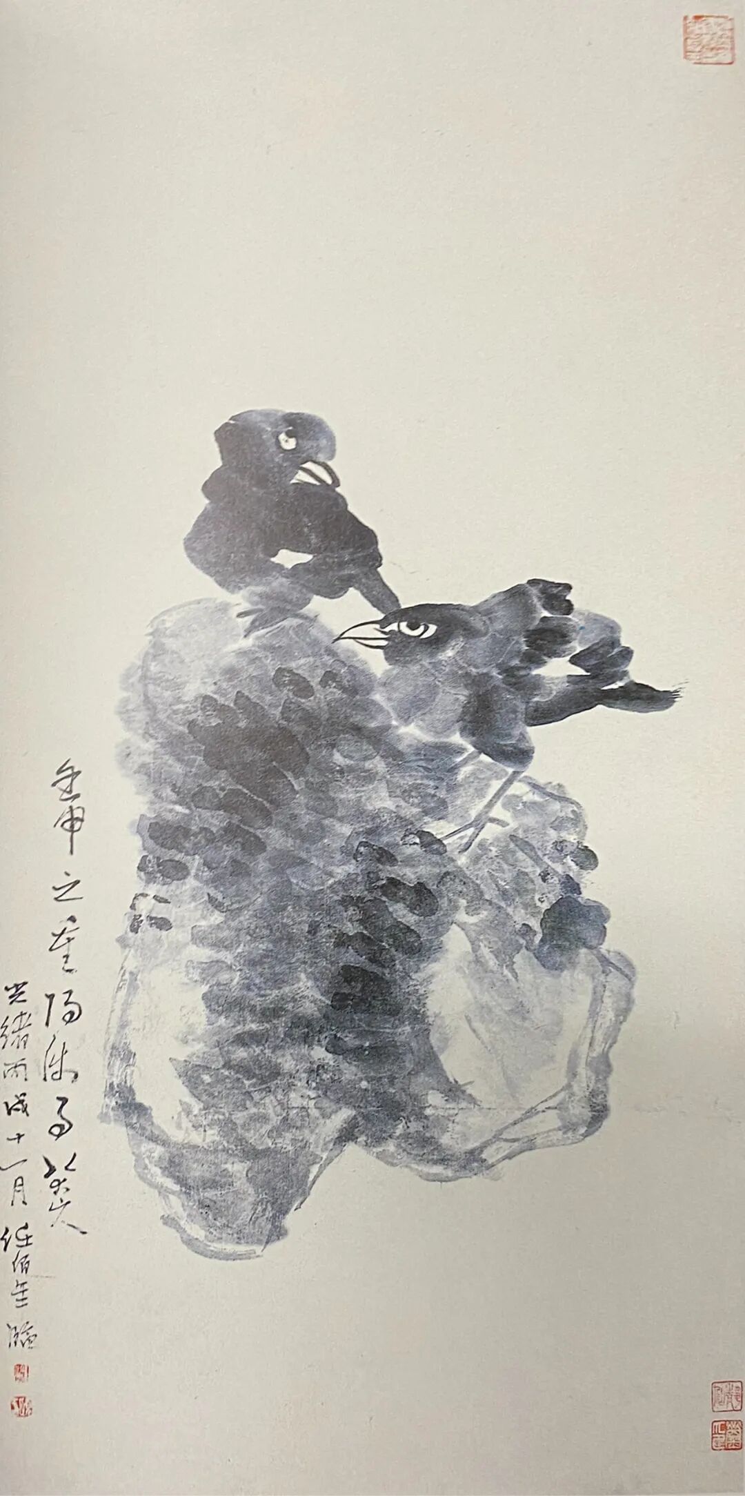 〈凌〉画家之大写意最非易事,墨一著纸,即难改移。青藤老人尝言覩白纸辄不敢落笔,其难可知。雪个作画纯用简笔,以天趣胜。伯年此作颇能得其神似,固不仅优孟衣冠比。昔张僧繇画鹰于壁能驱鸠鸽,黄荃画雉于殿上,白鹰见而下击,盖疑其真也。伯年其殆张、黄之流亚乎。己丑四月,凌霞记。