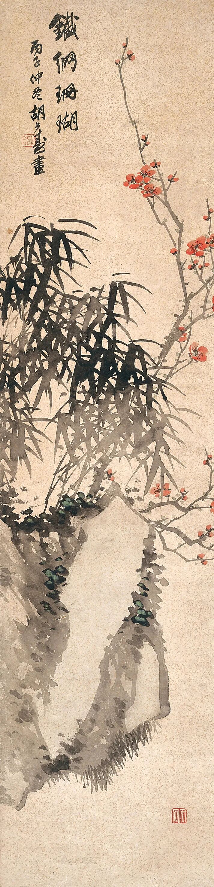 〈冬梅〉铁网珊瑚。丙子仲冬。胡公寿画。