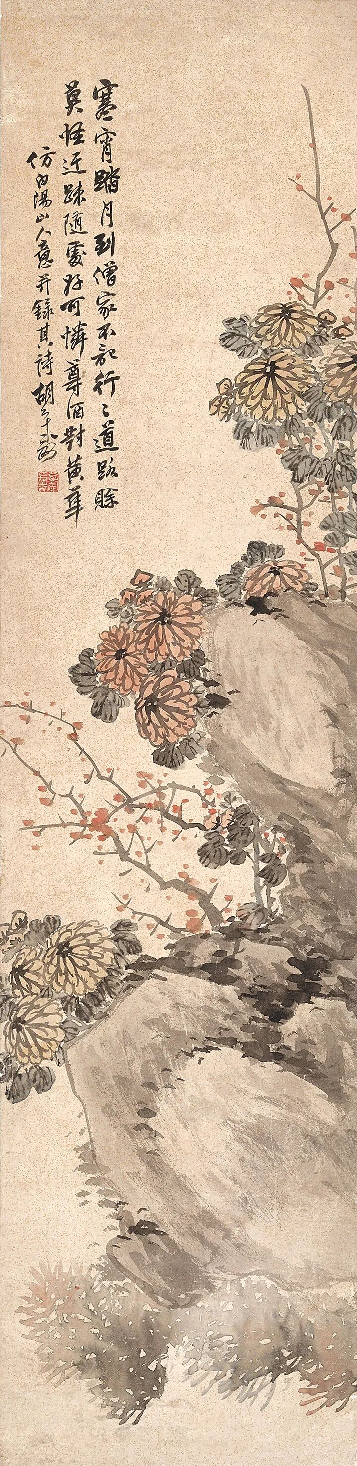 〈秋菊〉寒宵踏月到僧家,不记行行道路赊。莫怪迂踈随处好,可怜尊酒对黄花。仿白阳山人意并录其诗。胡公寿。