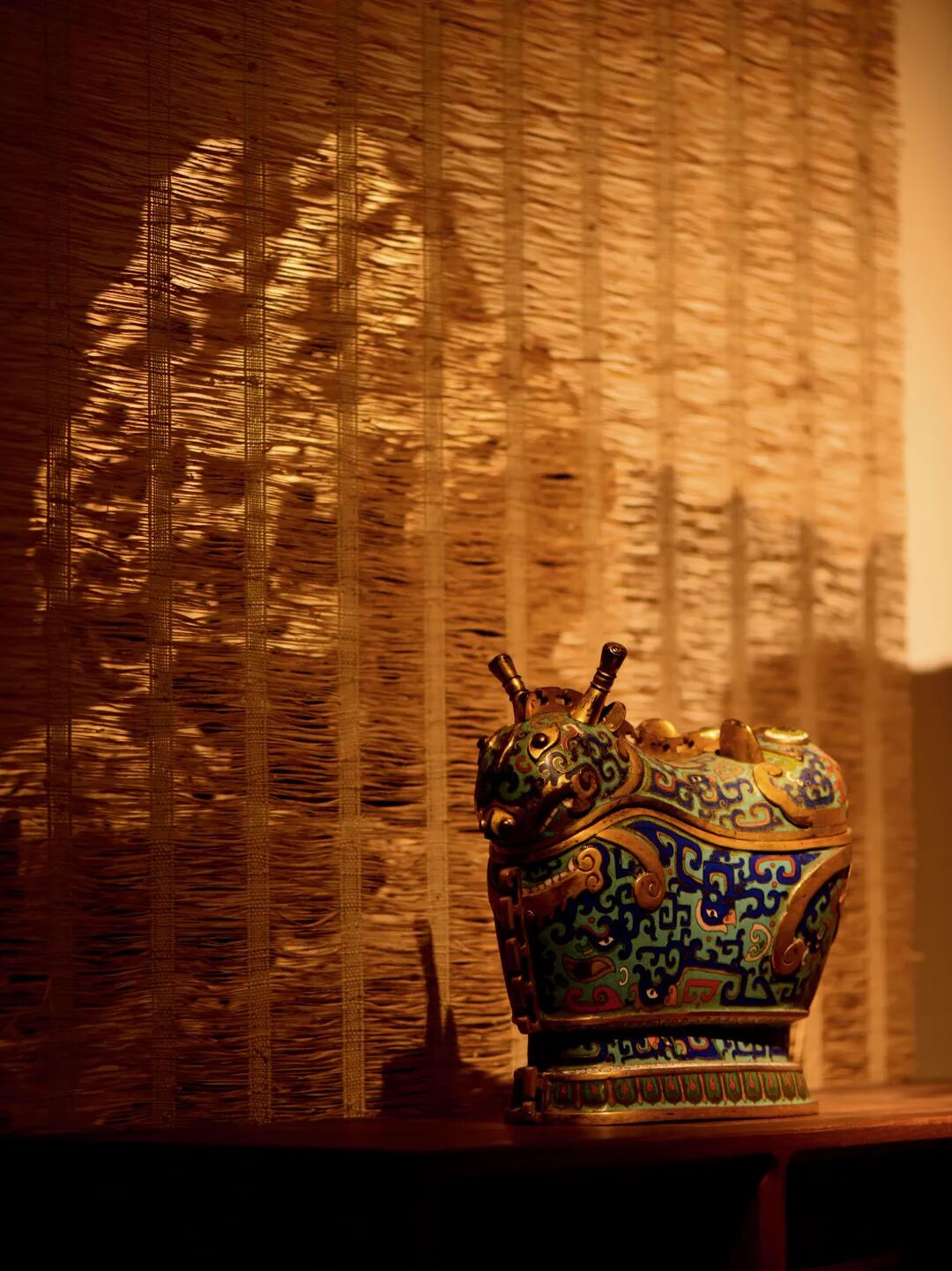 此炉由炉盖和炉身两部分组成,为专门用于香事的熏炉。使用时先将香料点燃后投入炉身中,再合盖即可。
